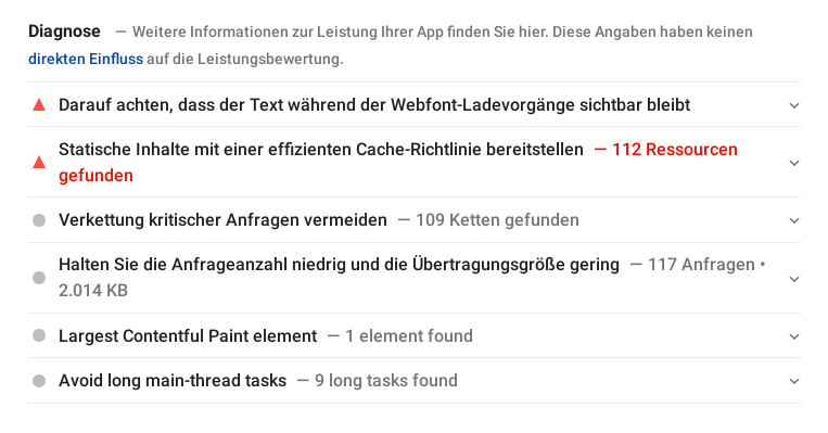 Im nächsten Absatz finden Sie eine ausführliche Diagnose mit Verbesserungsvorschlägen.